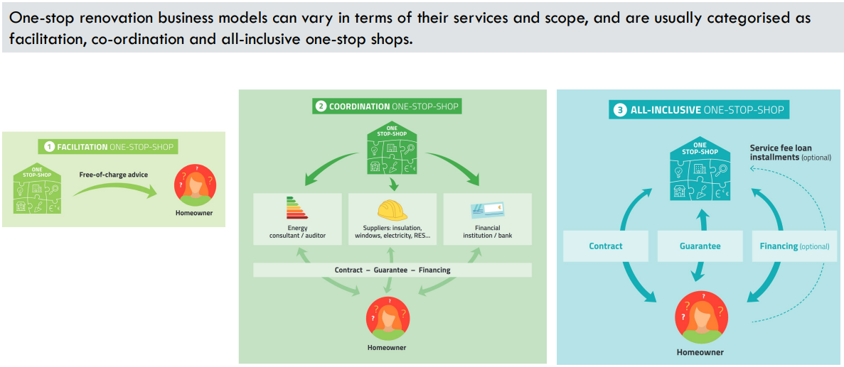 Abstract A One-Stop Shop (OSS) for renovation is a centralized service model that simplifies the renovation process by providing homeowners and building owners with guidance, resources, and support throughout their project. Designing an OSS in a participatory manner ensures that it addresses the specific needs of a region while fostering ownership and commitment among local actors. This guideline is designed for organizations interested in coordinating OSS business models. It includes useful workshop materials, offering ideas for planning and implementing stakeholder engagement activities. Additionally, it presents valuable insights from previous workshops that serve as examples and inspiration for other communities. These insights showcase best practices and creative approaches to foster collaboration and innovation. Authors: Zapata, Juliana; Haase, Matthias; Kauz, Christoph; Schmid, Christian; Bätschmann, Marc; Peran, David; Ulli-Beer, Silvia.